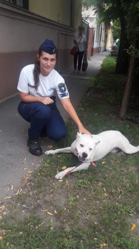 Egy kétségbeesett szolnoki lakos kért segítséget a rendőrségtől Szolnokon 2018. augusztus 11-én 11 óra körül. Elmondta, hogy a házuk előtt egy izmos, nagyobb testű kutya fekszik, nem mernek kijönni tőle az utcára. A Jász-Nagykun-Szolnok Megyei Rendőr-főkapitányság Tevékenység-irányítási Központja járőröket küldött a helyszínre és értesítette a Kéz a Mancsért Egyesület munkatársait is, akik már többször segítették a rendőrök munkáját hasonló esetekben. Ők szintén a megadott címre siettek. Segítségükkel - a kutyusban elhelyezett chip leolvasásával - könnyen azonosították a kutya tulajdonosát. A rendőrök értesítették a gazdát, így Zeusz, a két éves kan gyorsan hazakerülhetett.