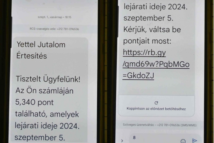 Tolna vármegyében többeket megkárosítottak ismeretlenek, akik a Yettel-ajándékpont beváltásáról szóló SMS-t küldtek gyanútlan felhasználóknak, majd egy adathalász linket.