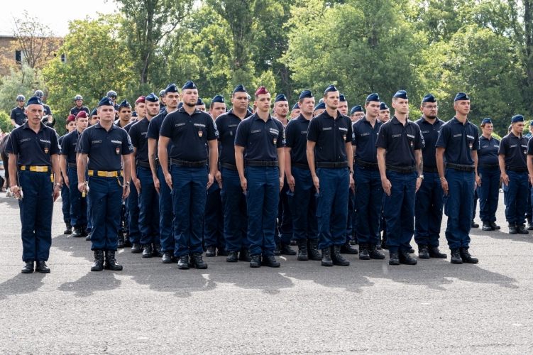 Ünnepélyes eskütétel keretében csatlakoztak a rendőrség kötelékéhez a frissen végzett rendőrjárőrök 2025. július 28-án, a Készenléti Rendőrség alakulóterén.