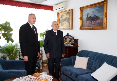 A Szabolcs-Szatmár-Bereg Megyei Rendőr-főkapitányság vezetője személyesen köszöntötte fel Szabó Imre nyugállományú r. ezredes Urat.