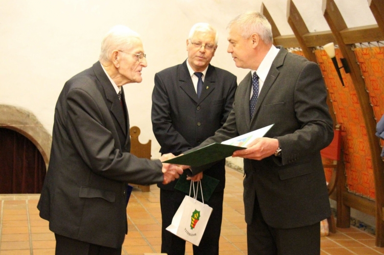 A Nyírbátori Határőr Igazgatóság Nyugdíjasai Egyesület közgyűlésén Farkas József r. dandártábornok, megyei rendőrfőkapitány Dr. Balogh János r. vezérőrnagy, országos rendőrfőkapitány nevében 90. születésnapja alkalmából köszöntötte Bagyinka György nyugállományú határőr alezredest 2019. március 19-én.