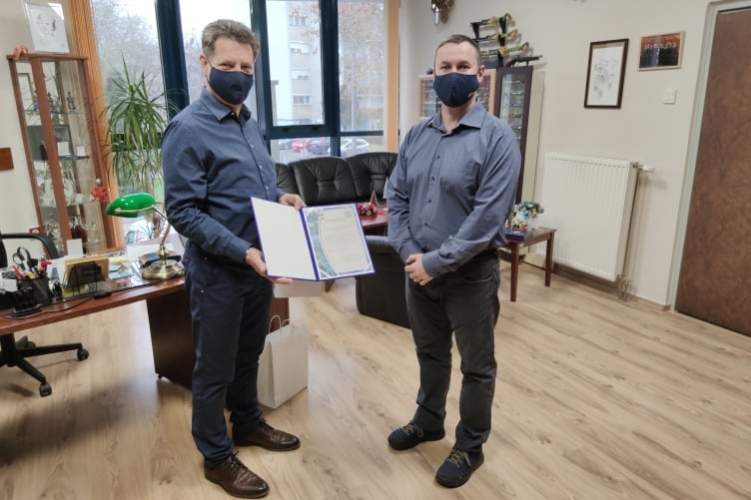 Sebők Attilának a díjat Dr. Balogh János rendőr altábornagy megbízásából Dr. Bognár Szilveszter rendőr ezredes, rendőrségi főtanácsos, városi rendőrkapitány adta át 2020. december 18-án.