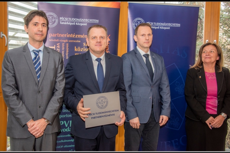 A Pécsi Tudományegyetem Szenátusi termében 2022. március 9-én címátadó ünnepséget tartottak a tanárképzés szakmai gyakorlataiban együttműködő új partnerintézmények számára.