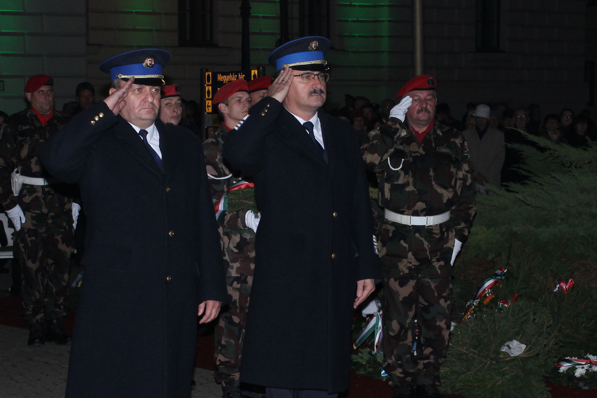 Veszprémben 18 órakor Anda György r. ezredes, megbízott rendőrfőkapitány és dr. Ipsits Csaba r. ezredes, veszprémi rendőrkapitány helyezett el koszorút a Megyeház téri Brusznyai emlékműnél.