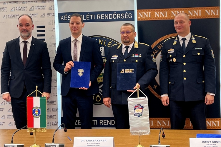 Együttműködési megállapodást írt alá a Széchenyi István Egyetem és a Készenléti Rendőrség (KR) ünnepélyes keretek között január 25-én a győri campuson. Ennek középpontjában a szakmai tapasztalatok kölcsönös megosztása áll, melynek részeként a KR Költségvetési Igazgatósága és a Nemzeti Nyomozó Iroda (NNI) gyakorlati tudásával gazdagítja az oktatást, míg a felsőoktatási intézmény kutatásaival járul hozzá partnere tevékenységéhez.