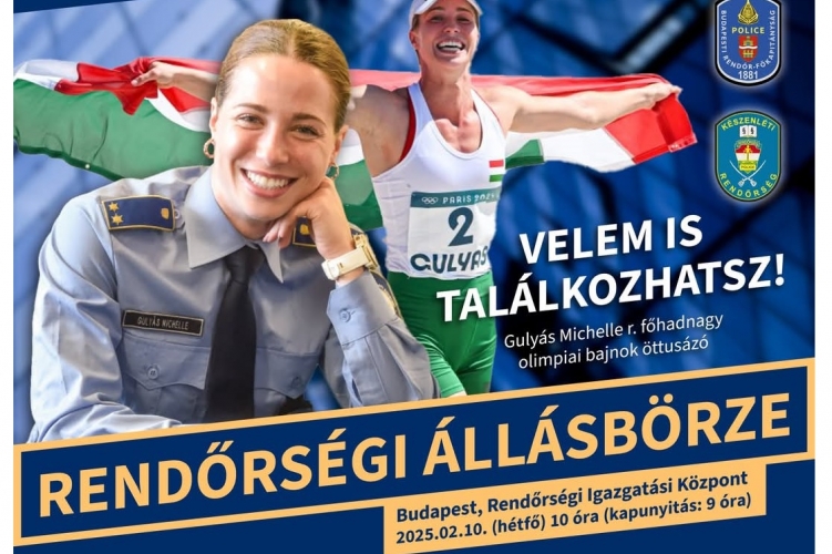 Első kézből kaphatnak információkat a rendőri hivatásról és a rendőrségen betölthető civil álláshelyekről az érdeklődők 2025. február 10-én 10 órától a Rendőrségi Igazgatási Központban. Az állásbörzét a Budapesti Rendőr-főkapitányság a Készenléti Rendőrséggel közösen szervezi, továbbá meghívottként képviselteti magát a Pest Vármegyei Rendőr-főkapitányság, illetve a Repülőtéri Rendőr Igazgatóság. A legkülönfélébb szakterületeken dolgozó rendőrökkel beszélgethetnek a látogatók: a légirendészeti pilótától kezdve a motoros rendőrön, gazdaságvédelmi szakemberen, kibernyomozón, motorcsónak-vezetőn át a határrendészig, iskolaőrig és informatikusig. Megtekinthetők az általuk használt technikai eszközök és járművek is. Az eseményen részt vesz Gulyás Michelle r. főhadnagy, olimpia bajnok öttusázó. A regisztrált látogatók sorsoláson vehetnek részt, amin rendőrhajós járőrözéssel egybekötött látogatást nyerhetnek a BRFK Dunai Vízirendészeti Rendőrkapitányságával.