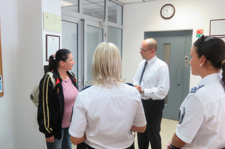 A nyílt nap keretein belül a zalai rendőrök igazi tapasztalatot szerezhettek arról, hogy milyen szellemileg sérült emberrel együttműködni, dolgozni, kommunikálni. A 49 éves, szellemileg sérült Gerócs Erika pedig egy napra bekapcsolódhatott abba a munkába, amiről gyermekkora óta álmodott. A Nagykanizsai Rendőrkapitányságon dr. Molnár József rendőr ezredes, kapitányságvezető üdvözölte elsőként az alkalmi kollégát és kísérőjét.