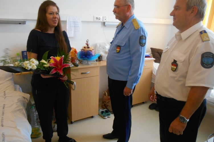Dr. Tiborcz János r. dandártábornok úr, a Vas Megyei Rendőr-főkapitányság vezetője és dr. Tánczi Tibor r. ezredes, bűnügyi főkapitány-helyettes úr a kórházban látogatta meg a kibővült családot. Vezető urak ajándékutalvánnyal kedveskedtek, valamint jó egészséget és sok örömet kívántak nekik.