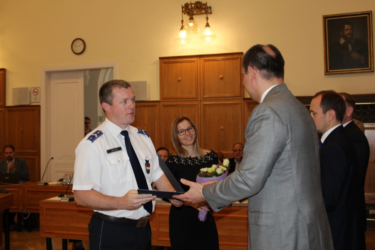 Pécs Megyei Jogú Város Önkormányzata Közgyűlésének elismerését idén Bugyi Zsolt rendőr zászlós, a Pécsi Rendőrkapitányság körzeti megbízottja vehette át.
