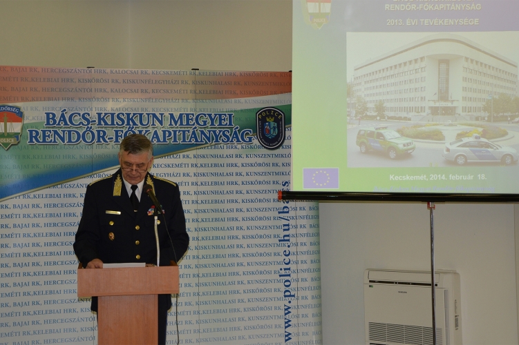 A Bács-Kiskun Megyei Rendőr-főkapitányság vezetője Dávid Károly r. dandártábornok a megye elmúlt évének rendőri tevékenységét értékelte Dr. Halmosi Zsolt r. vezérőrnagy országos rendőrfőkapitány-helyettes jelenlétében.