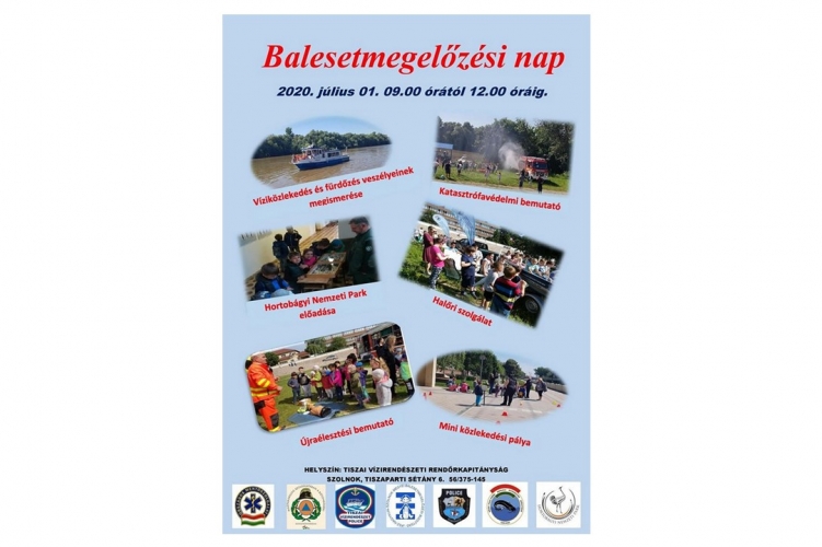 A Tiszai Vízirendészeti Rendőrkapitányság 2020. július 1-én 9 órától Balesetmegelőzési Napot tart gyerekeknek Szolnokon, a Tiszaparti sétányon. A helyszínen érdekességek várnak az oda látogató gyermekekre és felnőtt kísérőikre egyaránt. A vízirendőrök mellett a halőrök, a mentőszolgálat és a katasztrófavédelem munkatársai, valamint a Hortobágyi Nemzeti Park képviselői is szeretettel várnak minden kedves érdeklődőt.