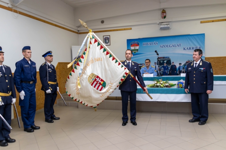 A kinevezési okmányok átvételét követően az új igazgató a csapatzászlót is átvette.