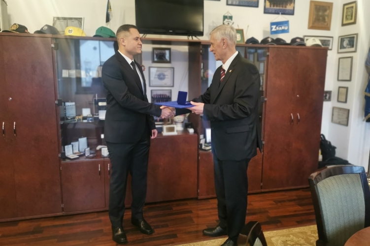 Dr. Pintér Sándor miniszterelnök-helyettes, Magyarország belügyminisztere Békefenntartásért Emlékérmet adományozott Baksa András r. századosnak.