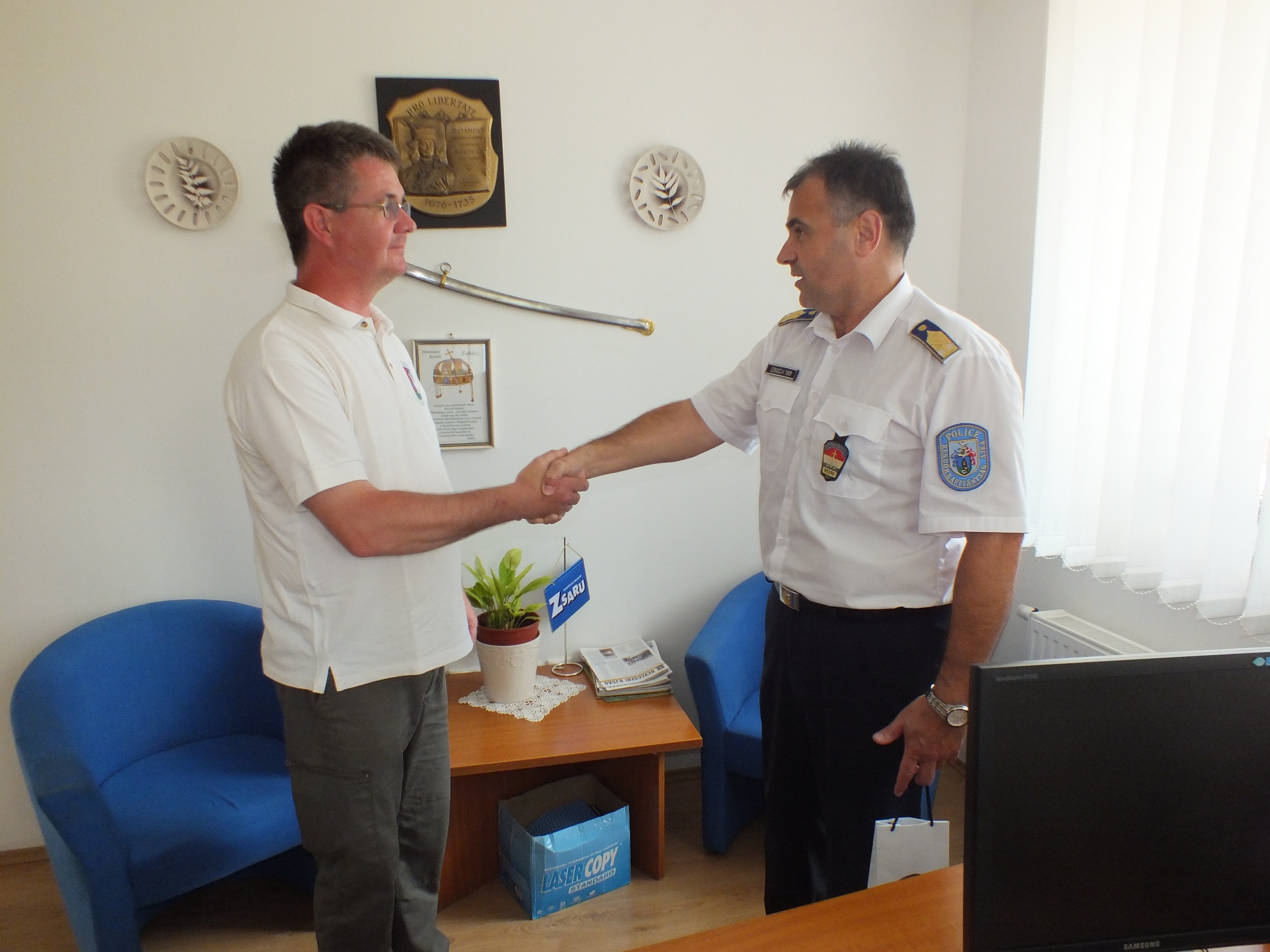 Az Ajkai Rendőrkapitányság vezetője jutalomban részesítette Sikos Csabát, a Polgárőr és Tűzmegelőző Egyesület Noszlop elnökét.