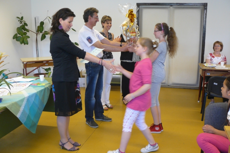 Ezt követően lelkesen tértek vissza a Tanácsterembe, majd egy kis frissítő és rágcsálnivaló elfogyasztása után következett a várva várt eredmények kihirdetése. Az KRESZ-tesztekben szerzett pontszámok, a gyermekek rajzai, valamint az ügyességi pályán nyújtott teljesítmény alapján állítottuk fel a helyezéseket. Az első három helyezett család ajándékkosarat kapott ajándékba, de a többiek is édességekkel és egy oklevéllel gazdagodtak.