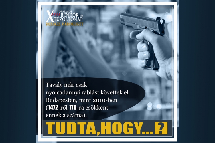 A X. Országos Rendőr- és Tűzoltónapot a budapesti Városligetben tartjuk 2023. április 22-én. A jubileumi rendezvény előtt minden nap újabb érdekes adatokat tudhat meg a Budapesti Rendőr-főkapitányság tevékenységéről.