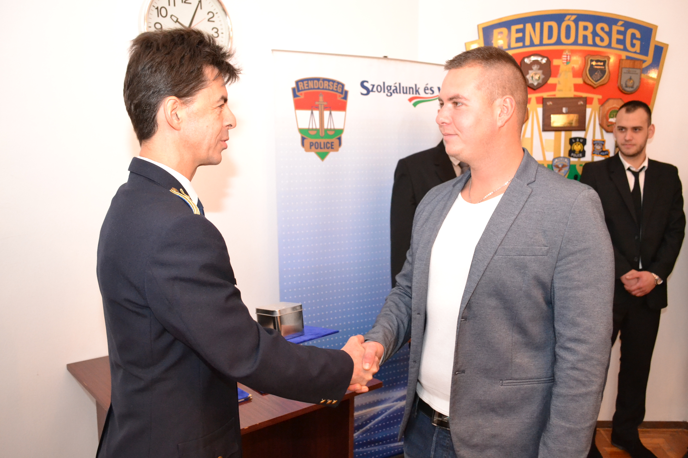 Dr. Varga Péter r. ezredes, megyei rendőrfőkapitány önfeláldozásukért, valamint talpraesett helytállásukért mind a négy fiatalembert dicséretben és tárgyjutalomban részesítette, melyet Vörös Ferenc r. ezredes a Fejér Megyei Rendőr-főkapitányság rendészeti főkapitány-helyettese adott át.