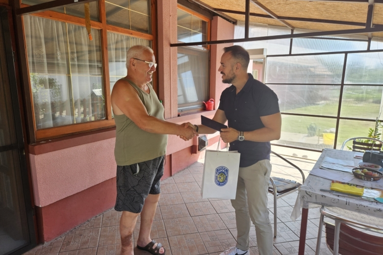 Emléklappal, ajándékokkal megpakolva érkezett dr. Csipler Norbert r. alezredes kapitányságvezető, a napokban 70. születésnapját ünneplő Gajdó Mihály nyugállományú főtörzszászlós otthonába.