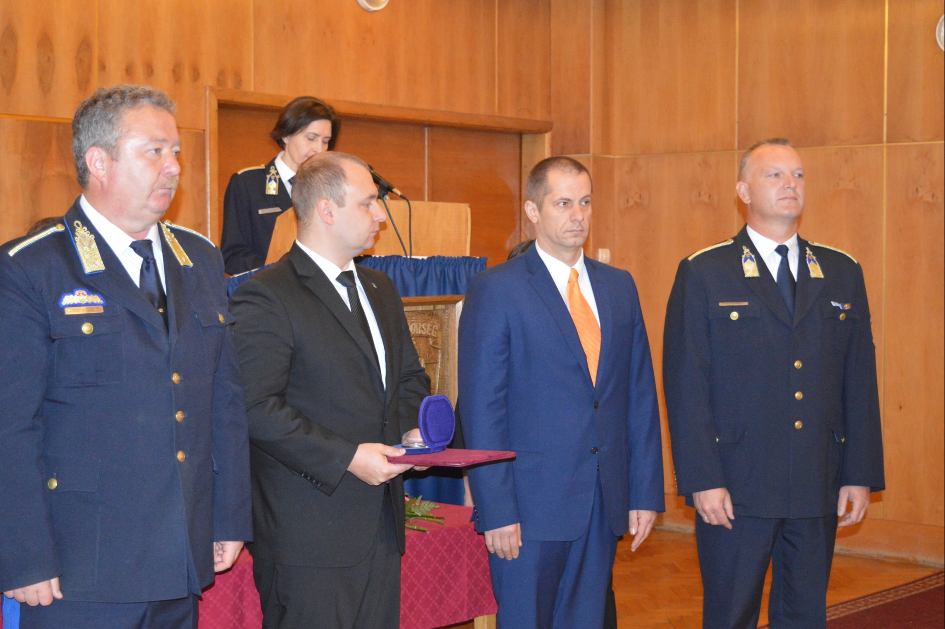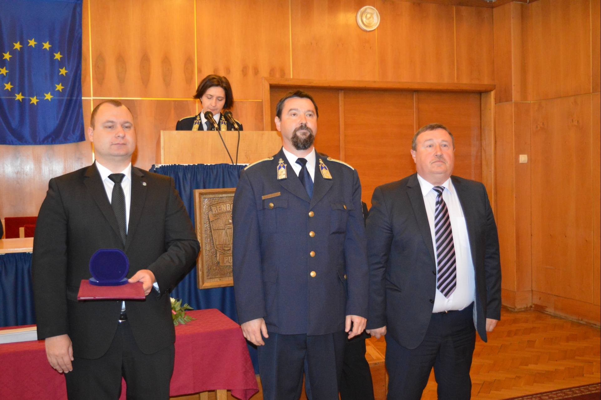 A főkapitányság dísztermében tartott állománygyűlésen Czinege László r. dandártábornok, rendőrségi főtanácsos, megyei rendőrfőkapitány több munkatársának tárgyjutalmat adományozott április 24-e, Szent György nap, a Rendőrség ünnepe alkalmából.