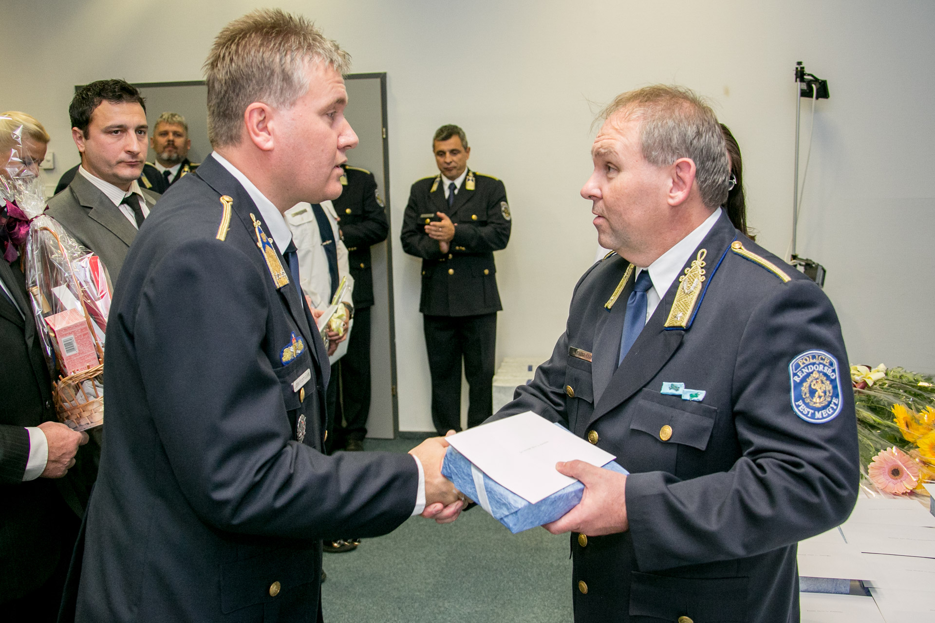 A Pest Megyei Rendőr-főkapitányság vezetője, Dr. Mihály István r. dandártábornok Nemzeti Ünnepünk, október 23. alkalmából soron kívül előléptetett 2 nyugállományú kollégát. Rendőr zászlóssá léptette elő Surman Viktor r. főtörzsőrmestert, Roznoviczki Renáta r. főtörzsőrmestert és Gyarmati Tibor r. főtörzsőrmestert. Kiemelkedő szakmai munkája elismeréseként további 50 kolléga részesült tárgyjutalomban, melyeket Dr. Fekete Csaba r. dandártábornok, főkapitány-helyettes adott át 2014. október 20-án a Rendőrségi Igazgatási Központban.