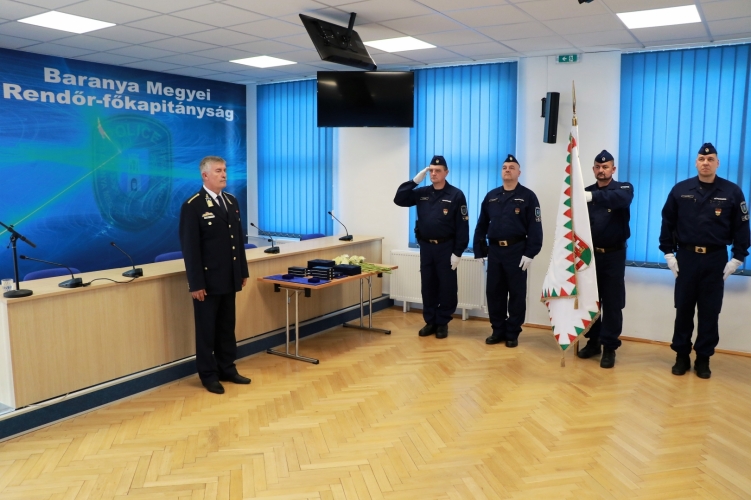Dr. Pintér Sándor, Magyarország belügyminisztere a béketámogató és polgári válságkezelési missziókban teljesített szolgálatukért „ Békefenntartásért Emlékérmet” adományozott Kovács Zoltán rendőr alezredesnek, a főkapitányság Tevékenység-irányítási Központ főügyeletesének, valamint Jobbágy Csaba rendőr zászlósnak, a főkapitányság Autópálya Alosztály helyszínelő- és baleset vizsgálójának . Továbbá Palkovics Sándor rendőr alezredesnek, a Pécsi Rendőrkapitányság Kertvárosi Rendőrs őrsparancsnokának rendőrségi főtanácsosi címet adományozott, 13 kollégát pedig Szolgálati Jel elismerésben részesített.