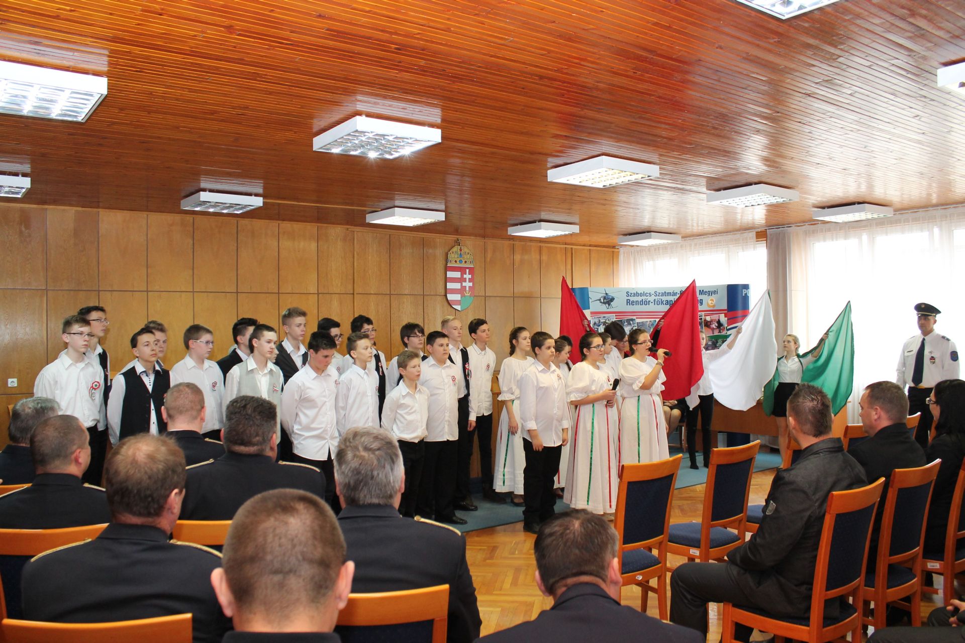 A megyei rendőr-főkapitányság vezetője az 1848/49-es forradalom és szabadságharc évfordulója alkalmából eredményes munkájuk elismeréseként, feladataik kiemelkedő teljesítéséért tárgyjutalomban részesített 44 dolgozót. A rendezvényen a nyíregyházi Bem József Általános Iskola diákjai adtak ünnepi műsort.