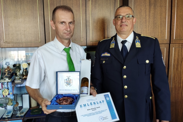 Dr. Bogyay Ferenc r. ezredes, Miskolc rendőrkapitánya 2020. június 22-én délelőtt irodájában fogadta, és elismerésben részesítette Kiss Károly Zsoltot, a Miskolci Városi Közlekedési Zrt. munkatársát.