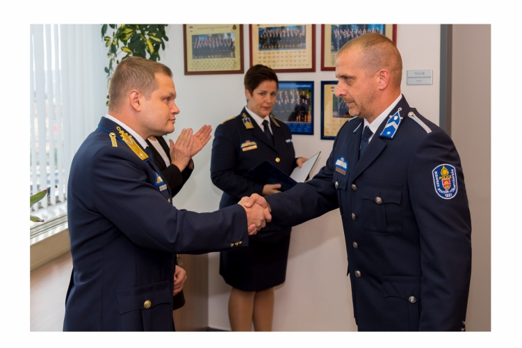Dr. Terdik Tamás r. dandártábornok, Budapest rendőrfőkapitánya elismerést és jutalmat adott át annak a budapesti rendőrnek, aki szabadnapján élesztett újra egy férfit Tatabányán.