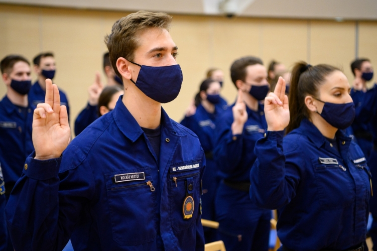 A Nemzeti Közszolgálati Egyetem Rendészettudományi Kar első évfolyamos hallgatói, 53 rendőr tisztjelölt tett ünnepélyes esküt a Rendőrségi Igazgatási Központban 2022. február 16-án, a tisztjelölti vizsga teljesítését követően.