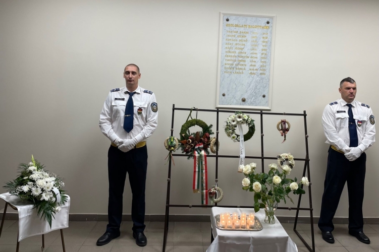 A Halottak Napja alkalmából tartott megemlékezésen a megyei rendőr-főkapitányság képviseletében dr. Tóbiás Rajmund r. ezredes a Humánigazgatási Szolgálat vezetője helyezte el a tisztelet koszorúját 2022. október 28-án a főkapitányság épületében elhelyezett márványtábla előtt. A táblán azoknak a kollégáknak a neve szerepel, akik szolgálatteljesítés közben vesztették életüket.