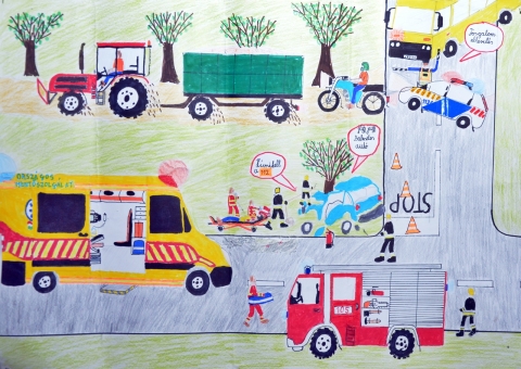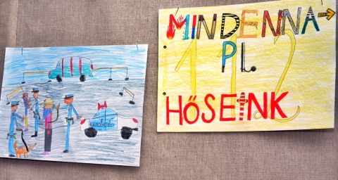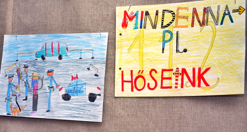 Általános iskolás gyermekek rajzaiból nyílt kiállítás a Békés Megyei Rendőr-főkapitányság épületének ügyfélterében. Az alkotások készítői a 112-es számon elérhető rendőrök, mentők és tűzoltók hétköznapjait igyekeztek megörökíteni.