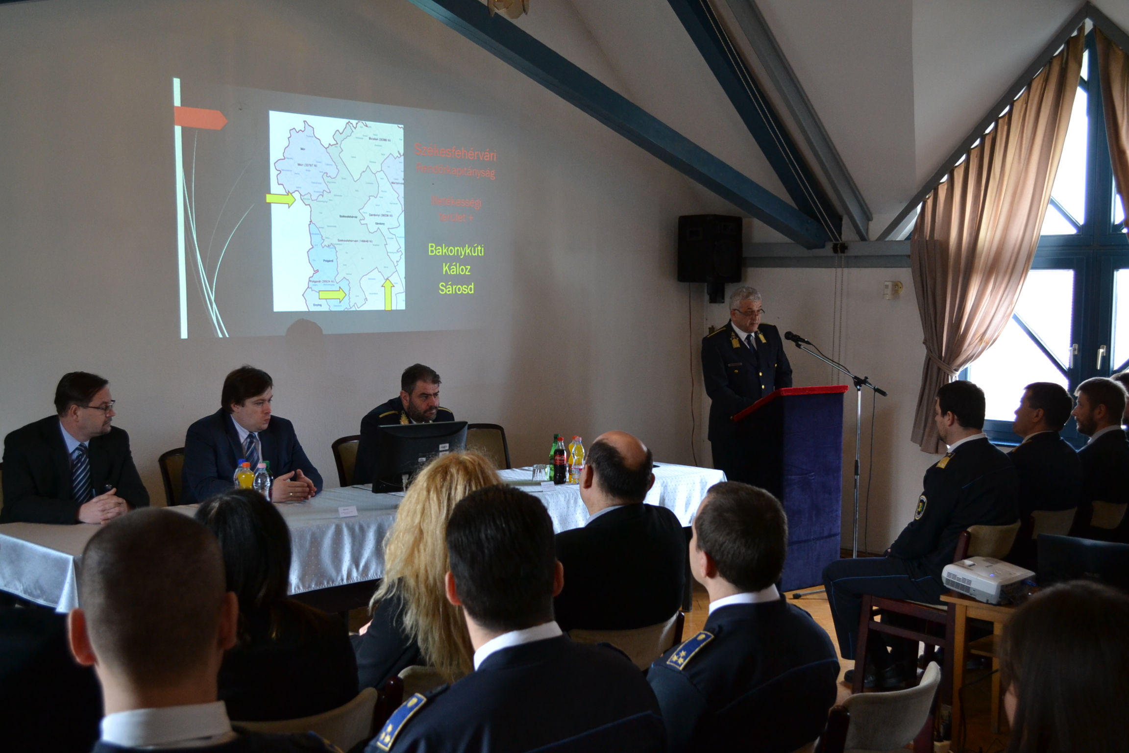 A szakmai értekezlet elöljárója Dr. Varga Péter r. dandártábornok, a Fejér Megyei Rendőr-főkapitányság vezetője volt. A főkapitány összességében kiválóra értékelte a székesfehérvári rendőrök teljesítményét, majd köszönetet mondott az állomány sokszor emberfeletti erőfeszítéseiért.