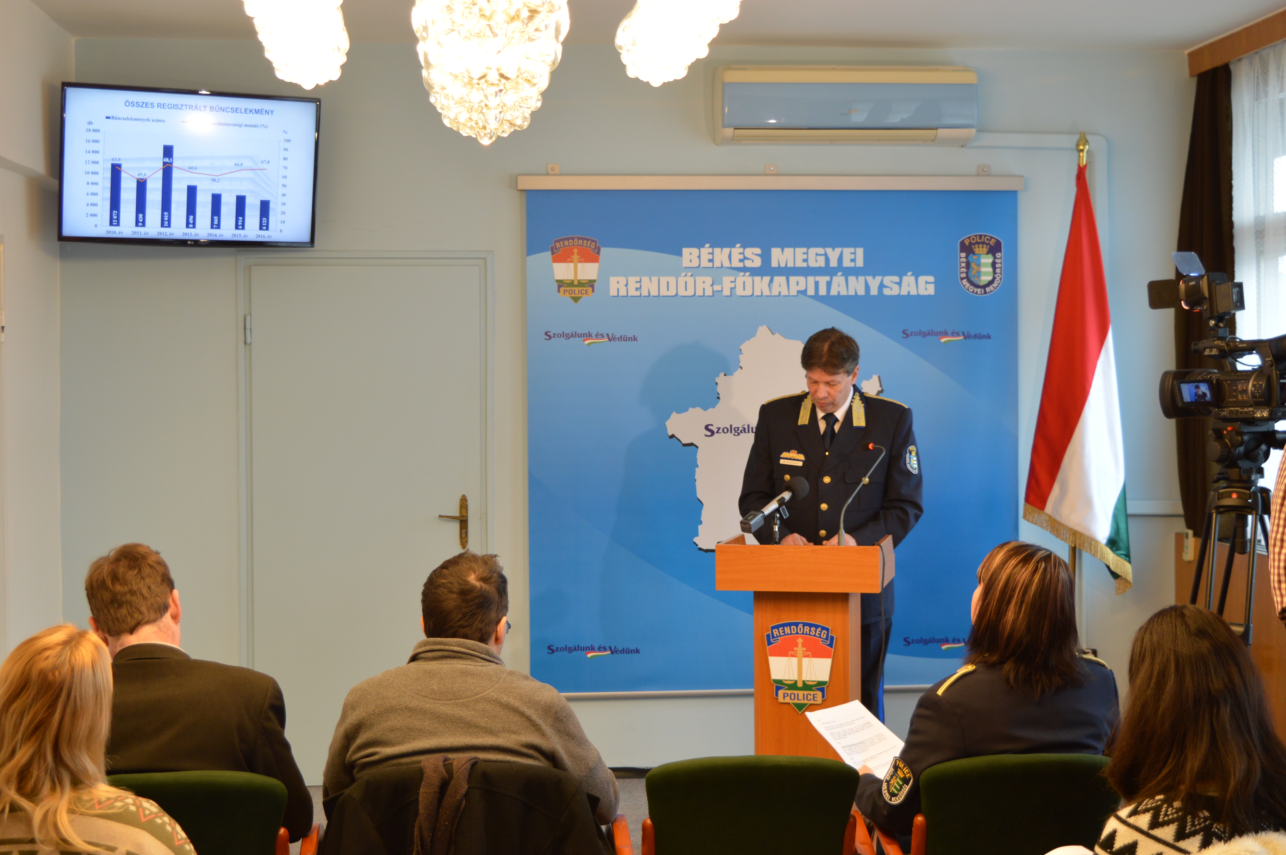 Békés megye aktuális közbiztonsági, bűnügyi helyzetéről, a rendőrség 2016. évi tevékenyégéről tartott sajtótájékoztatót 2017. február 9-én dr. Polyák Zsolt r. dandártábornok, a Békés Megyei Rendőr-főkapitányság vezetője. Bemutatta a rendőrségnek a közrend erősítése érdekében tett intézkedéseit, az elért eredményeket és a testület célkitűzéseit.