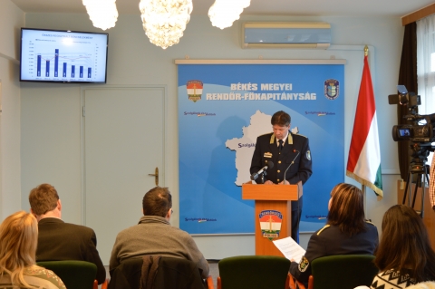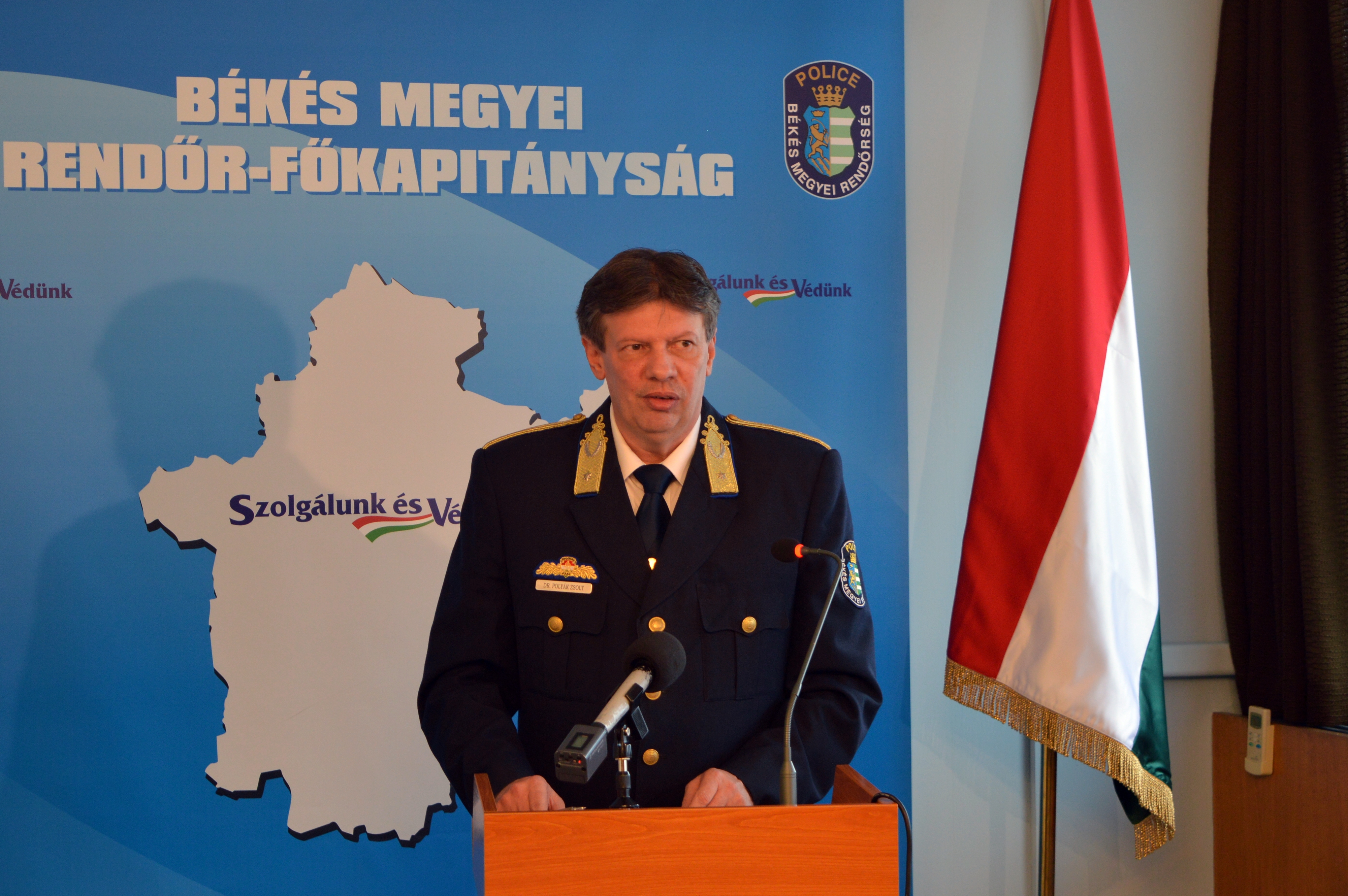 A Békés megyei rendőrség 2016. évi tevékenységéről tartott tájékoztatót dr. Polyák Zsolt r. dandártábornok, megyei rendőrfőkapitány.