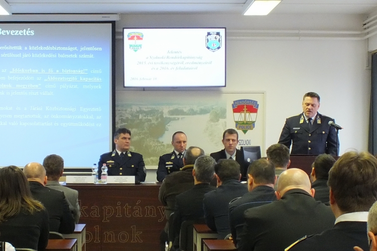 A Szolnoki Rendőrkapitányság 2016. február 18-án tartotta a 2015. évi tevékenységét értékelő értekezletét. Szabó Zoltán rendőr alezredes, kapitányságvezető beszédében kiemelte, hogy a települések 24 órás rendőri lefedettségét biztosították és határozottan felléptek az állampolgárok szubjektív közbiztonságérzetét befolyásoló jogsértések ellen.