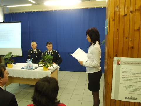 Az állománygyűlés elöljárója Dr. Széchy Zsolt rendőr alezredes, a megyei rendőrfőkapitány rendészeti helyettese volt, aki a tavalyi év értékelésén túl meghatározta az idei év feladatait.