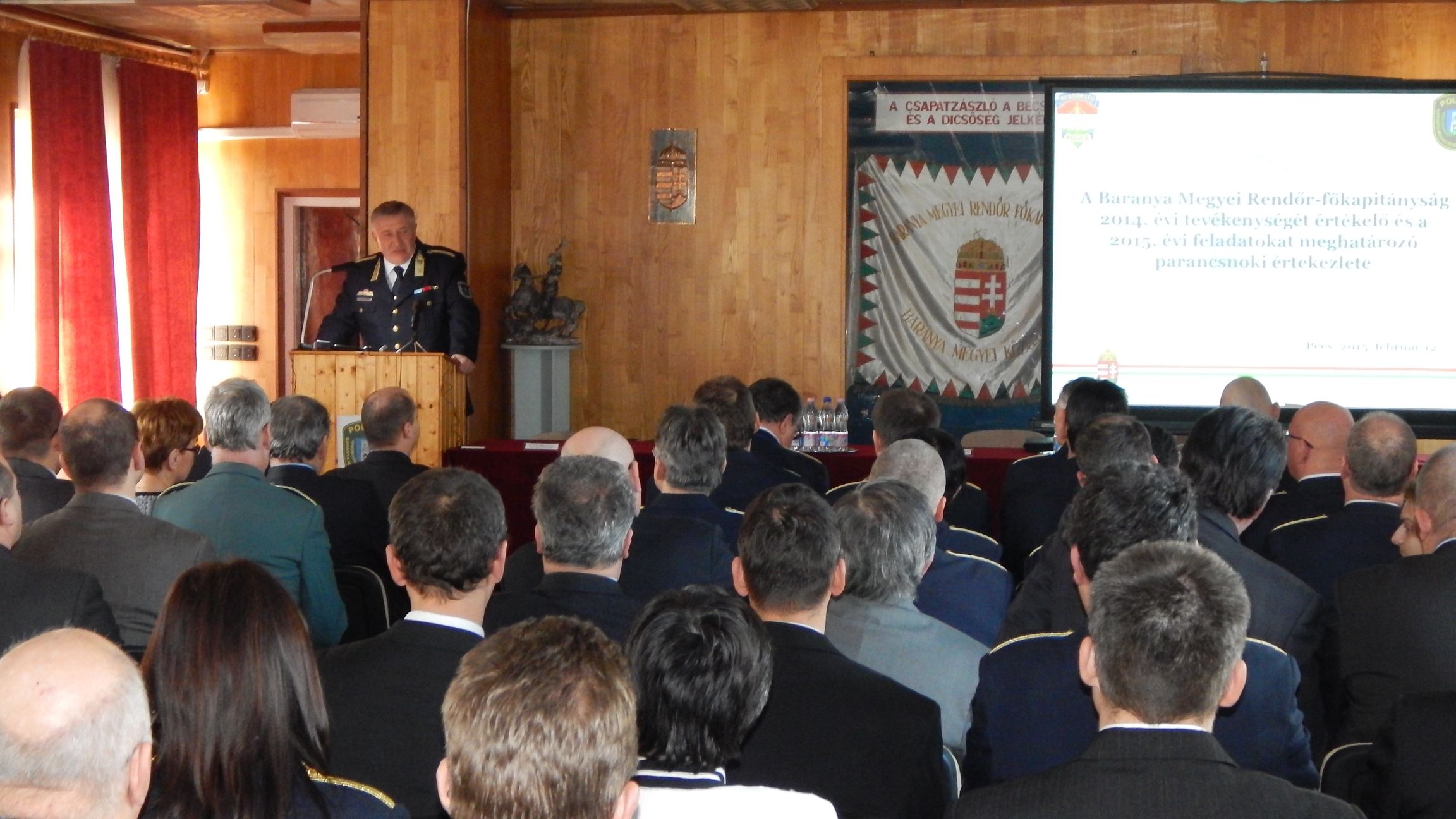 Baranya megye rendőrfőkapitánya adatokkal alátámasztva mutatta be a főkapitányság tavalyi munkáját, majd azt követően meghatározta a 2015-ös év főbb feladatait.