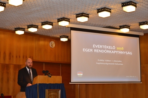 Erdélyi Gábor r. alezredes, az Egri Rendőrkapitányság kapitányságvezető-helyettese 2017. február 22-én a Heves Megyei Rendőr-főkapitányság dísztermében tartott sajtótájékoztatót a média megjelent képviselőinek a testület 2016. évben végzett munkájáról, valamint az idei év főbb célkitűzéseit is ismertette.