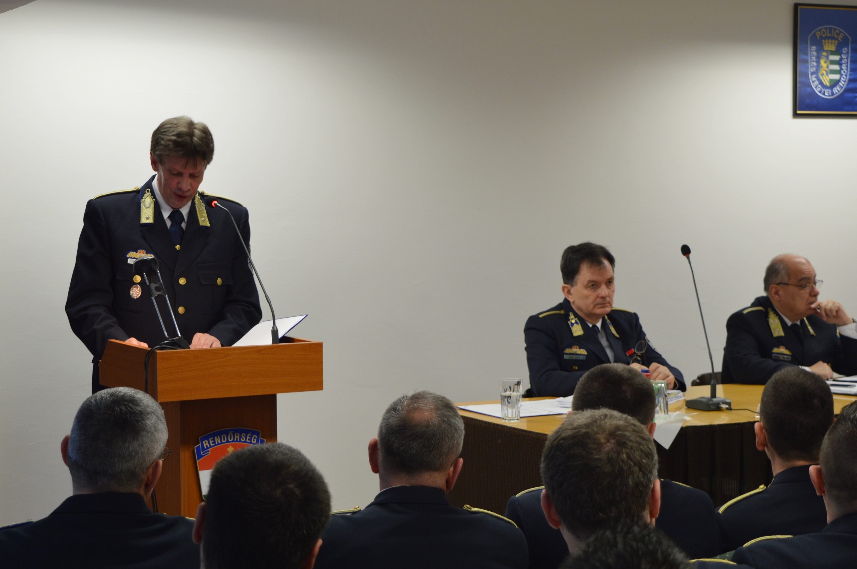 Ezt követően Papp Károly r. altábornagy, rendőrségi főtanácsos, országos rendőrfőkapitány értékelte a Békés Megyei Rendőr-főkapitányság állományának 2015. évi tevékenységét és meghatározta a jövőre vonatkozó feladatokat, célkitűzéseket.