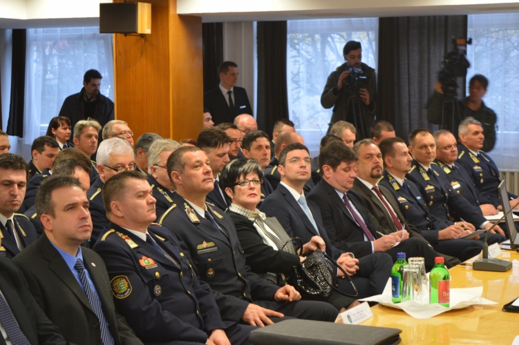 Az elismerések átadását követően dr. Polyák Zsolt r. dandártábornok, rendőrségi főtanácsos, a Békés Megyei Rendőr-főkapitányság vezetője részletesen ismertette a megye közbiztonsági helyzetét befolyásoló jogsértésekre vonatkozó adatokat. A bűnügyi fertőzöttségről elmondta, hogy a rendőri eljárásban regisztrált bűncselekmények összesített száma Békés megyében 2015-ben 6 914 volt, amely 2,1%-kal kevesebb, mint az előző évi 7 065. A bűncselekmények százezer lakosra jutó száma 1 868, ami alacsony fertőzöttséget jelent. A csökkenő bűncselekményszámhoz 2015-ben 66%-os nyomozáseredményesség párosult, amely 7,8%-kal magasabb a 2014-es adatnál. Békéscsaba a 23 megyei jogú városok közül a 22. legkevésbé fertőzött, 1 621-es mérőszáma a kategória átlagának 50%-át sem éri el.