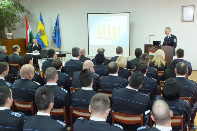 Az évértékelő állománygyűlés elöljárója Dr. Gyurosovics József r. dandártábornok, a Hajdú-Bihar Megyei Rendőr-főkapitányság vezetője volt, aki a Debreceni Rendőrkapitányság tavalyi évi rendőri tevékenységét jónak, eredményesnek értékelte, valamint a jövőre tekintettel feladatokat, célokat határozott meg.