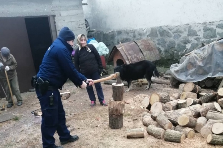 A járőrök felajánlották a segítségüket, és az udvaron felhalmozott fát fél óra alatt összevágták. A két idős nő nagyon hálás volt a hirtelen jött egyenruhás támogatásért.