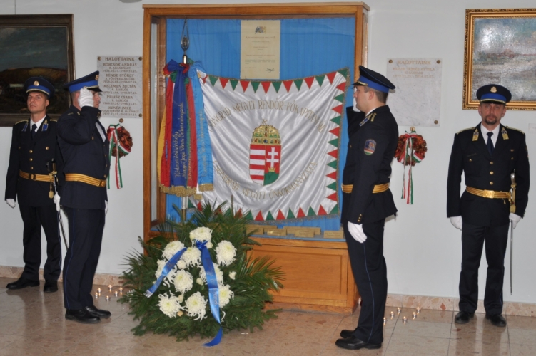 Az emlékezés koszorúját az állomány nevében dr. Lukács János r. dandártábornok, megyei rendőrfőkapitány helyezte el.