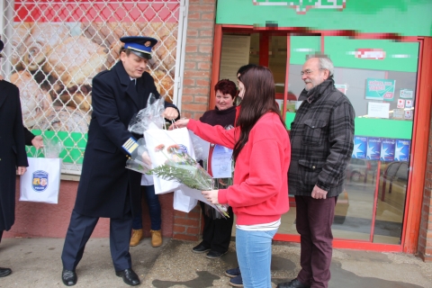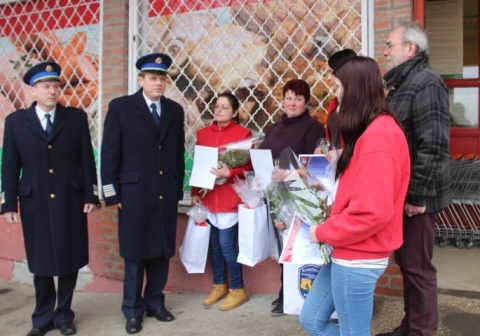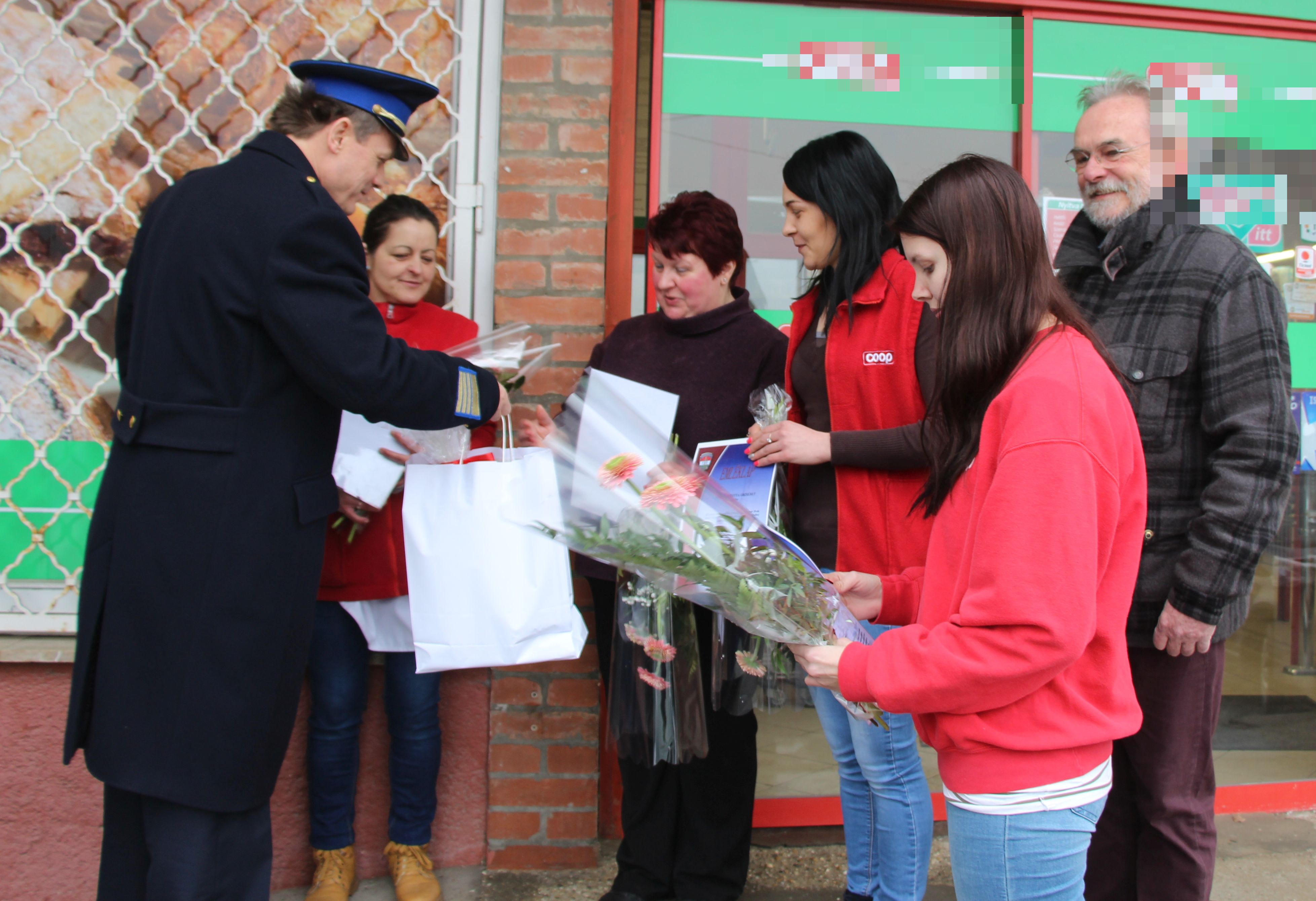 A Komárom-Esztergom Megyei Rendőr-főkapitányság vezetője emléklapokat és ajándékcsomagokat adott át az üzlet alkalmazottainak.