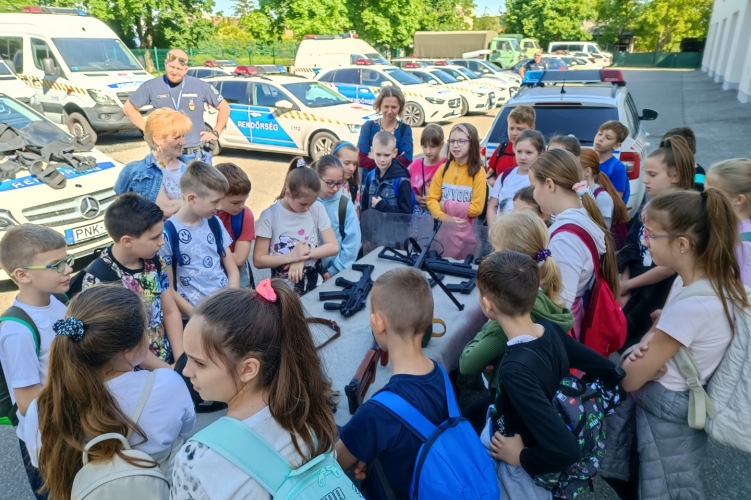 A tanulóknak bemutatták az általuk használt technikai eszközöket, fegyverzetet, beülhettek a rendőrautókba, megnézték a Tevékenység-irányítási Központot, ahol arról beszélgettek velük, hogy tudnak segítséget kérni baj esetén.