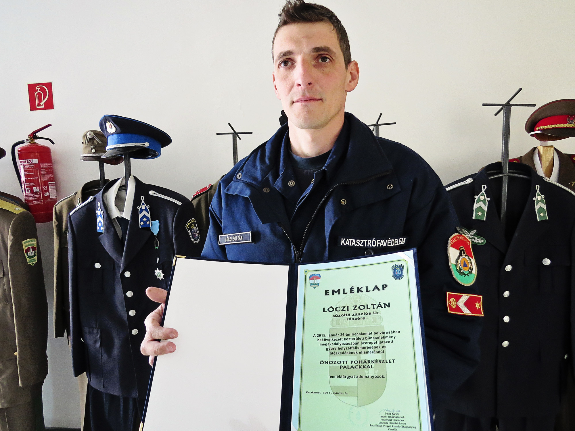 Dávid Károly r. dandártábornok, a Bács-Kiskun Megyei Rendőr-főkapitányság vezetője 2015. március 6-án a Kecskemét belvárosában történt eset kapcsán a gyors helyzetfelismerésének és intézkedésének elismeréséül tárgyjutalomban részesítette Lóczi Zoltán tűzoltó zászlóst.