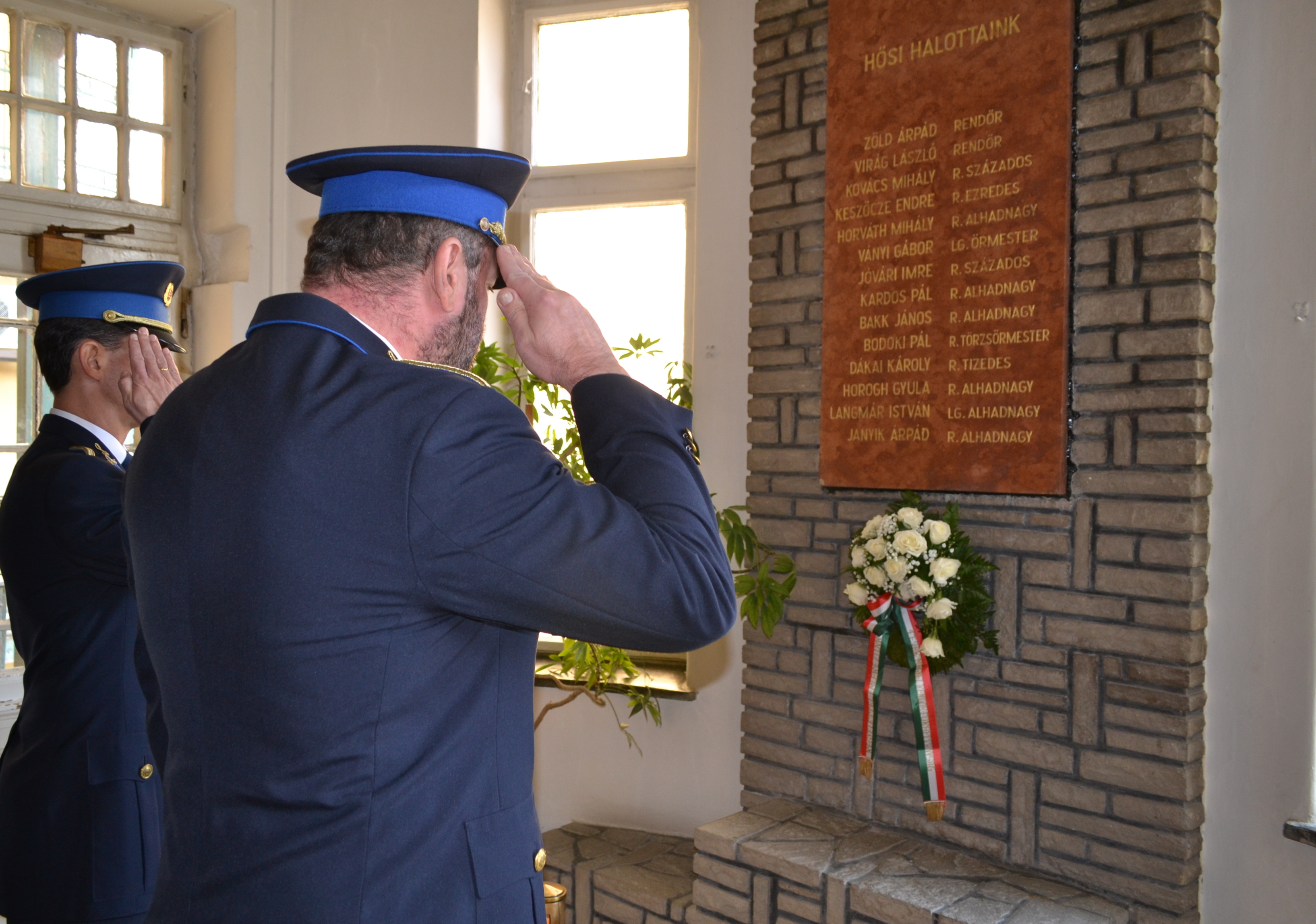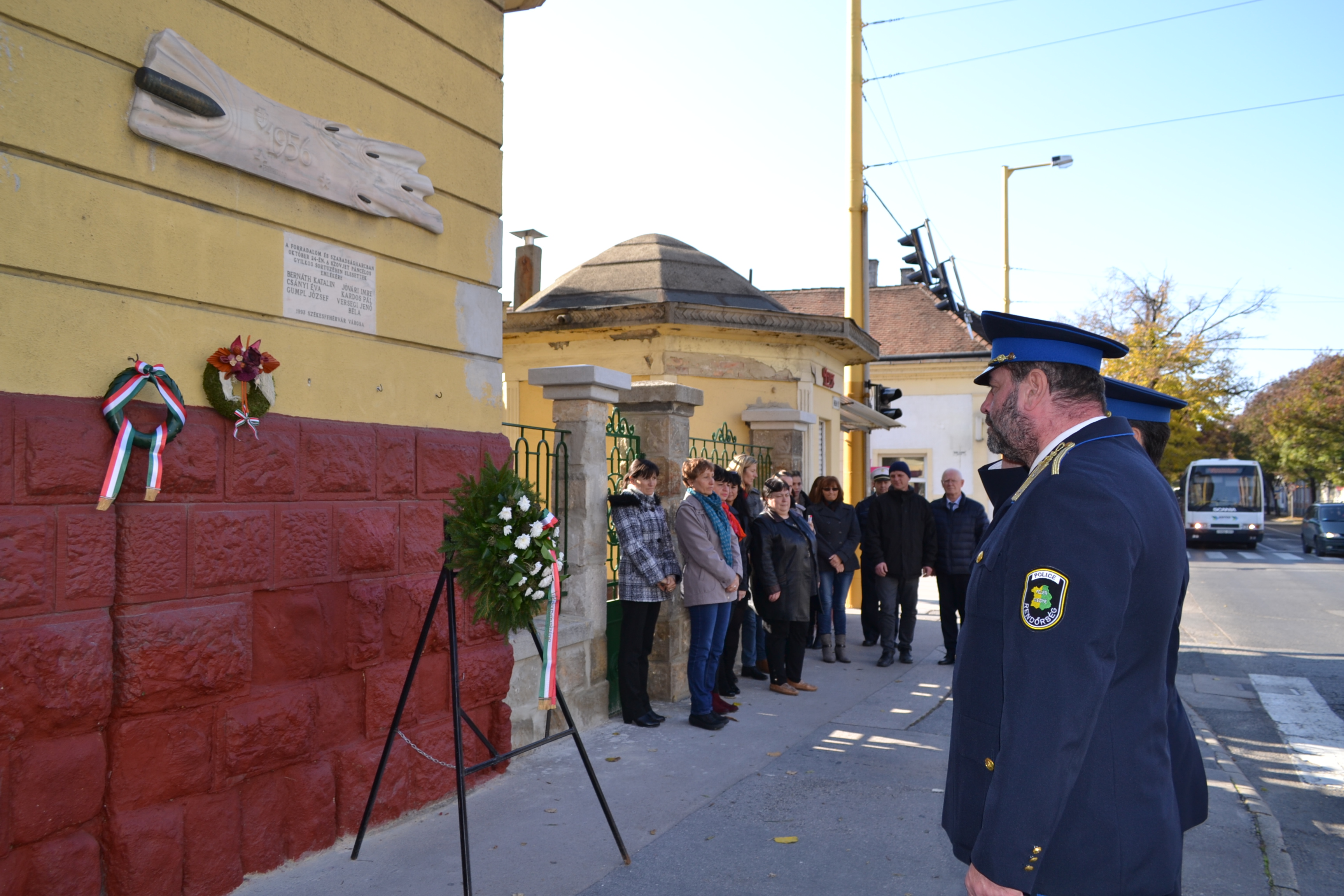 Dr. Varga Péter rendőr dandártábornok, Fejér megye rendőrfőkapitánya a megemlékezés koszorúját helyezte el 2016. október 28-án délelőtt a főkapitányságnak helyet adó Szabó Palota oldalán található emlékmű előtt. A márványtábla Jóvári Imre rendőr százados és Kardos Pál rendőr alhadnagy emlékére készült, akik 1956. október 24-én a főkapitányság épülete előtti gépfegyvertűz következtében vesztették életüket.