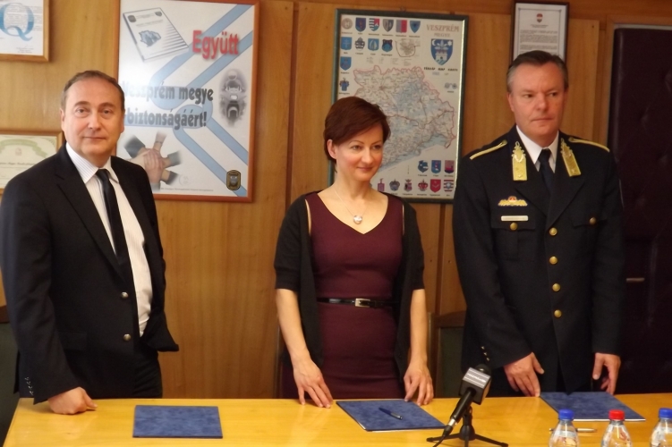 Együttműködési megállapodást írt alá a megyei rendőr-főkapitányág vezetője az Alkohol - Drogsegély Ambulancia Egyesület vezetője és a Veszprém Megyei Kormányhivatal vezetője 2014. április 1-jén Veszprémben.