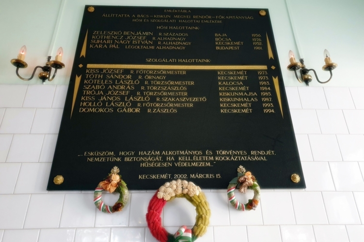 A főkapitányság épületében lévő emléktáblánál Dávid Károly rendőr dandártábornok – megyei főkapitány – és Márton Attila rendőr ezredes – gazdasági főkapitány-helyettes – helyezték el a megemlékezés koszorúját, valamint gyújtottak mécsest az elhunyt kollégák emlékére.