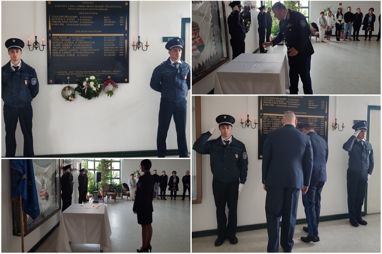 A főkapitányság épületében lévő emléktáblánál dr. Gulyás Zsolt r. dandártábornok, a Bács-Kiskun Vármegyei Rendőr-főkapitányság vezetője és dr. Tartott Zsolt r. alezredes, a Kiskőrösi Rendőrkapitányság vezetője helyezték el a megemlékezés koszorúját, majd mécsest gyújtottak az elhunyt kollégák emlékére.